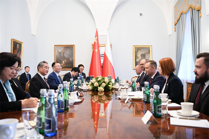 Wang, also a member of the Political Bureau of the Communist Party of China Central Committee, conveyed President Xi's greetings, saying that under the strategic guidance of the two heads of state, the China-Poland comprehensive strategic partnership has maintained steady development.